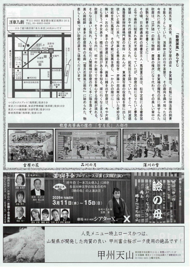 若獅子会プロデュース公演「歌麿屏風」 2025.09.19(金) ~ 2025.09.21(日) 浅草九劇